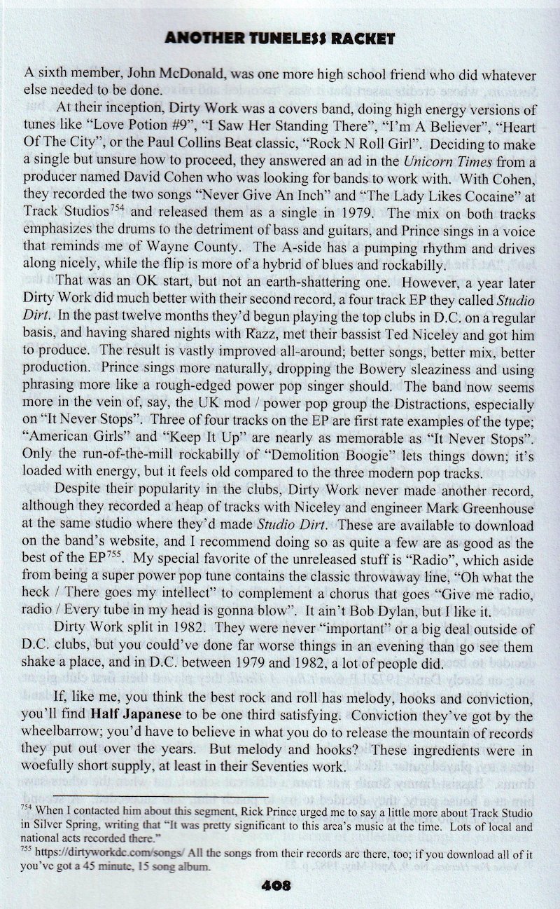 Reviews Another Tuneless Racket: Punk and New Wave in the Seventies – book by Steven H. Gardner released on Apr 25, 2025 To view book details or purchase the book on Amazon click here Unicorn Times review for the Ground Zero Band and Dirty Work at the Psychedelly on Jan 10, 1980 American U Eagle review for Tears and Dirty Work at the Psychedelly on Feb 1, 1980 Other Newspaper Shoutouts